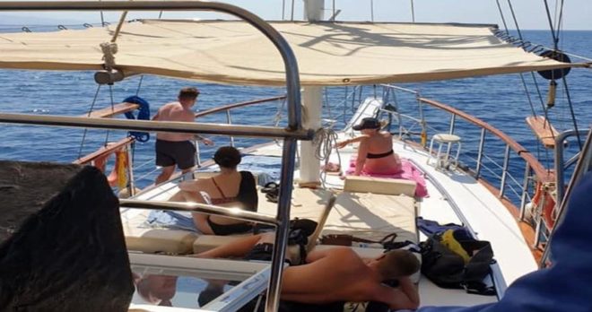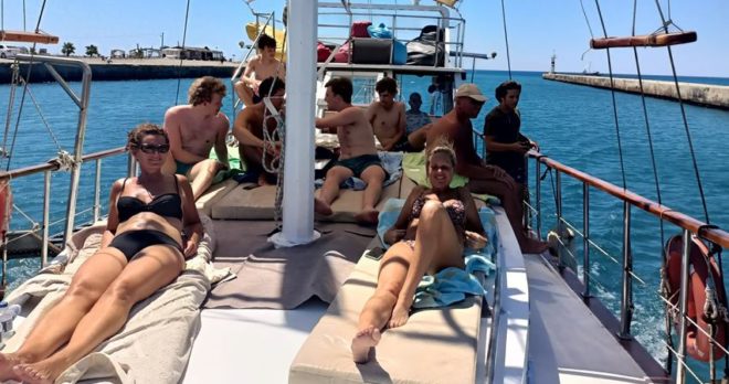 Tavuk, balık, köfte, makarna, salata ve meyveden oluşan açık büfe öğle yemeğinin tadını çıkarın, sınırsız alkolsüz içecekler ve 70cc şarap şişesi ile. 🥂 Guletin güvertesinde, muhteşem Akdeniz manzaraları eşliğinde bu yemek deneyimi, Gulet turu Side yüzme ve öğle yemeği ileni zenginleştirir.