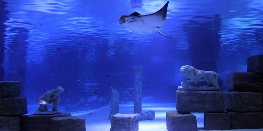 131m uzunluğundaki su altı tüneline dalın (3m genişlik, 5M litre), 2012'den beri küresel bir rekor. Temalı bölümlerden geçin: