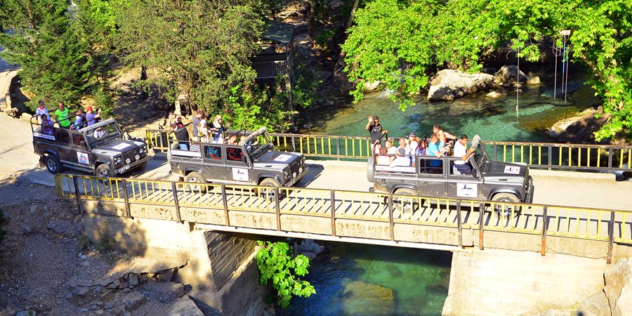 70 km jeep safari rotanız, Side'ın zümrüt manzaraları arasında dolanır, Köprüçay Nehri ve Köprülü Kanyon Milli Parkı'nda sona erer. Şunlara hayran kalın: