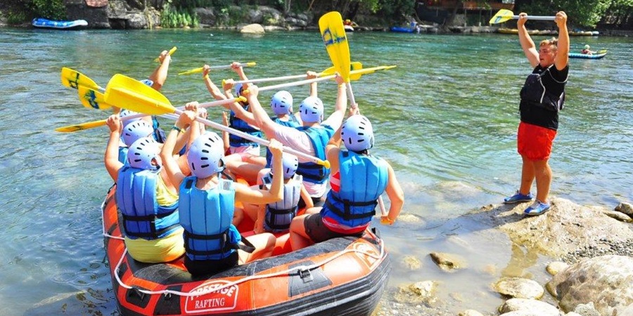 Her raftta, güvenli ve rehberli bir navigasyon için özel bir rehber bulunur - Antalya rafting turlarında yeni başlayanlar veya profesyoneller için idealdir. Su sıcaklığı? Dağ kar erimesinden gelen ferahlatıcı 10-12°C!