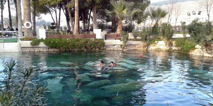 Yapılması Gereken: Termal havuzlarda (yıl boyunca 36°C) yürüyün – astım ve cilt için rahatlatıcı. İsteğe bağlı: Kleopatra Havuzunda yüzme (6€ ekstra, toplam giriş ~30€) 7. yüzyıldan kalma devasa bir depremden kalma mermer sütunlar arasında. Efsaneye göre Kleopatra burada yıkanmış, Marc Antony tarafından hediye edilmiş – saf terapötik lüks!