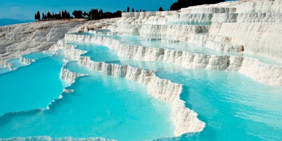 4. Pamukkale Keşfi (4 Saat): Beyaz traverten teraslarında dolaşın, Hierapolis'i keşfedin ve Kleopatra Havuzu'nda yüzün. 🏛️