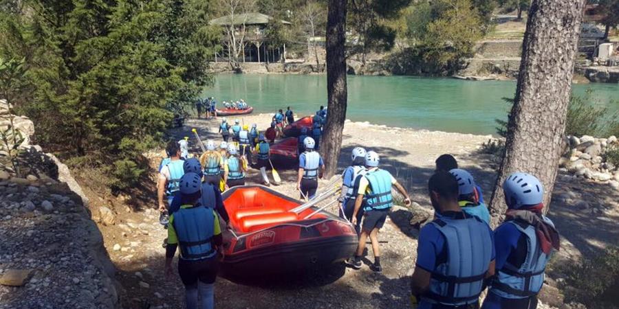 4. Rafting Aşama 1 (40 Dakika): Köprüçay Nehri'nde 14 km'lik 2+ seviyesindeki akıntılarda kürek çekin. 🚣